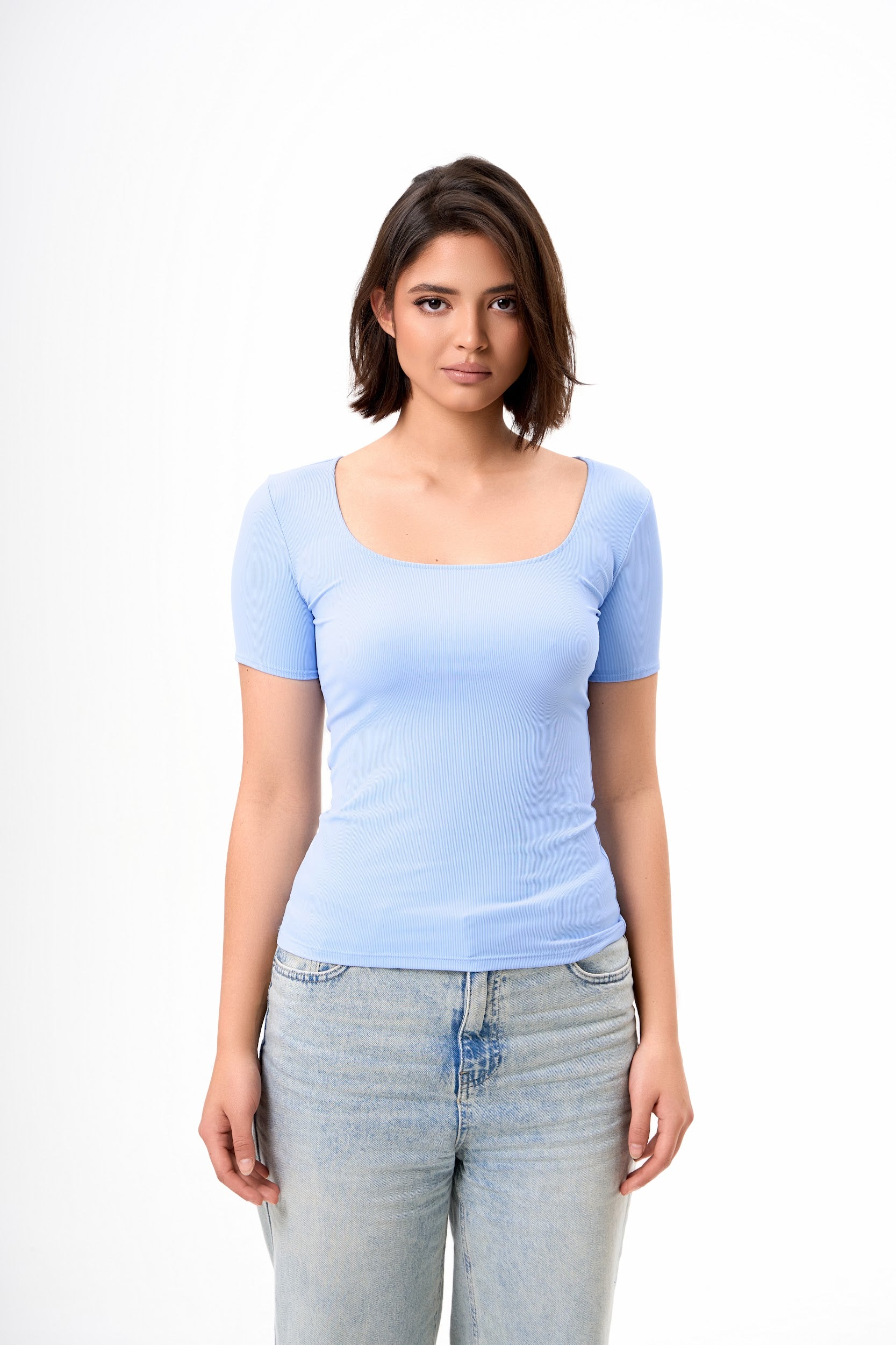 Tricou cu gât pătrat Bianco