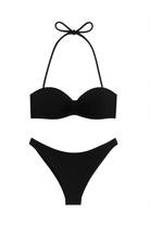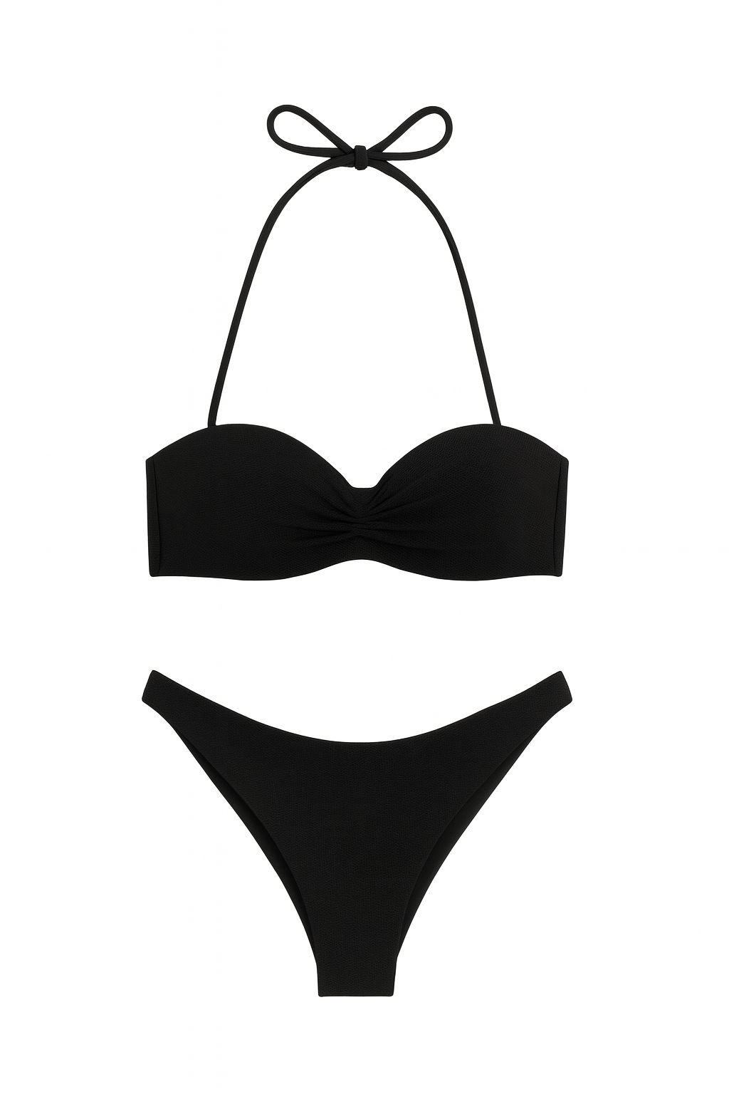 Sutien tip bandeau cu push-up integrat, realizat din tricot texturat, cu susținere ușoară și bretele detașabile pentru un bronz uniform. Se leagă la spate, oferind o potrivire reglabilă și stabilă.