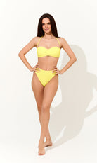 Slipul are talie înaltă și croi decupat, cu bata lata si moale, conturând silueta și alungind optic picioarele.