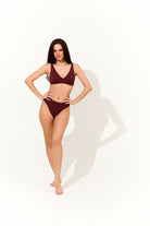 Costum de baie fabricat din tricot premium italian, creat pentru confort, susținere și eleganță absolută. Top fără cupe, dar cu armătură metalică pentru o susținere delicată.
