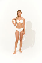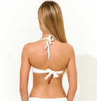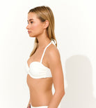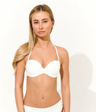 Sutien tip bandeau cu cupe întărite și armătură de susținere, ideal pentru un bust bine conturat. Prezintă detalii discrete de încrețire în centru și bretele detasabile pentru un plus de confort și susținere.