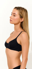 Costum de baie fabricat din tricot premium italian, creat pentru confort, susținere și eleganță absolută. Top fără cupe, dar cu armătură metalică pentru o susținere delicată.